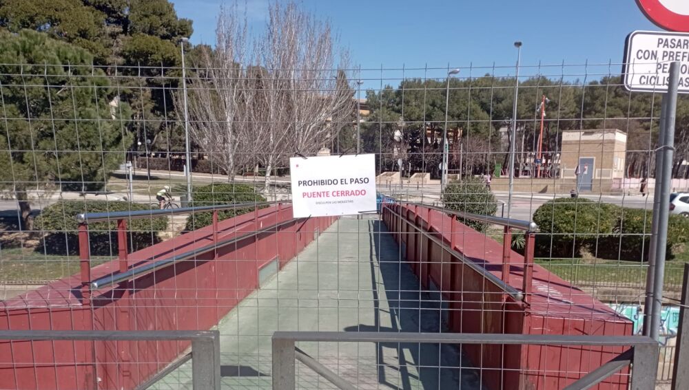 Las obras para la rehabilitación de la pasarela han quedado desiertas en dos ocasiones y pronto volverán a salir a licitación. El puente se ubica al noreste de la ciudad, comunicando los barrios de Santo Domingo y el Perpetuo Socorro, entre las calles Pedro Arnal Cavero y Lucas Mallada a la altura del parque del Encuentro.
