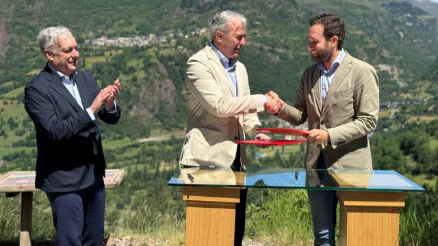 El presidente del Gobierno de Aragón, Jorge Azcón, y el presidente de la Diputación Provincial de Huesca, Isaac Claver, han firmado este martes el protocolo de colaboración entre ambas administraciones para hacer realidad la mejora de la pista forestal que une Chía con Plan, una reivindicación histórica en la que invertirán 5 millones de euros. El objetivo es que las obras se liciten en los próximos meses y empiecen a ejecutarse a finales de 2025 o principios de 2026.