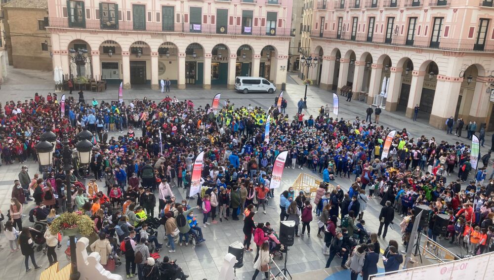 Representando a todos los colegios de la ciudad, más de mil niños han realizado un recorrido circular de 2 kilómetros con salida y meta en la plaza López Allué. Antes de comenzar, se han entregado los premios a los ganadores de los concursos de dibujo y microrrelatos, organizados en colaboración con los colegios de Huesca, con el objetivo de sensibilizar a los alumnos y de paso animarles a participar en la Marcha Aspace solidaria prevista para el día 8 de mayo.