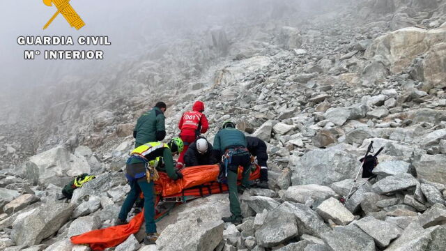 La persona accidentada se encontraba a unos 3.150 metros. Finalmente, los equipos pudieron iniciar el descenso porteando la camilla entre grandes bloques de piedra inestables y asegurándola con cuerda en diferentes tramos debido a la fuerte inclinación del terreno.