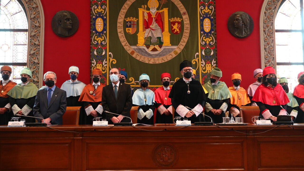 El presidente aragonés, Javier Lambán, ha clausurado la ceremonia, con el deseo de mantener la “magnífica” relación que une al Gobierno y a la Universidad. En ese sentido, ha anunciado su intención de reactivar el “Consejo del Futuro” que ya estuvo en marcha la pasada legislatura, para que "hombres y mujeres con talento" reflexionen y hagan sus aportaciones respecto a la complicada situación que vive Europa y su impacto en Aragón.