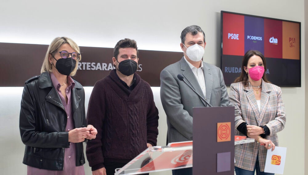 Pilimar Zamora, del Partido Socialista; Nacho Escartín, de Podemos; Joaquín Palacín, de Chunta, y Esther Peirat, del Partido Aragonés, coinciden en que el trasvase es un proyecto caduco e insostenible, y acusan a los populares de utilizar políticamente la crecida del Ebro para reavivar el asunto del trasvase y ganar votos en las cuencas deficitarias.