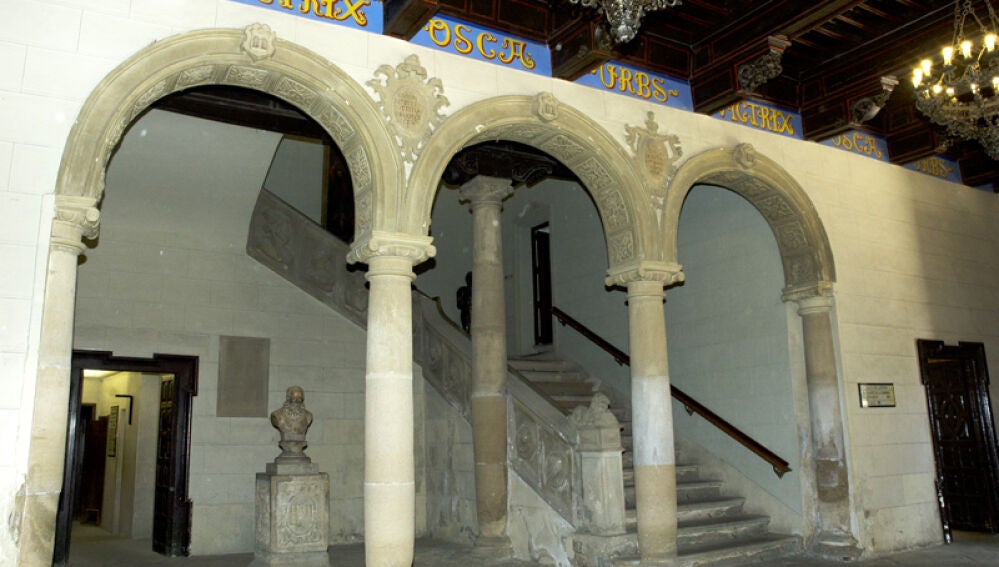 El Ayuntamiento de Huesca es un conjunto arquitectónico de gran relevancia histórico-artística cuyo origen se remonta al año 1451, cuando se construyeron “las Casas de la Ciudad”, sede del Concejo de la ciudad de Huesca. El monumento consta de dos zonas diferenciadas, asemejadas en sus fachadas y comunicadas interiormente: las antiguas Casas de la Ciudad y el Colegio Mayor e Imperial de Santiago.