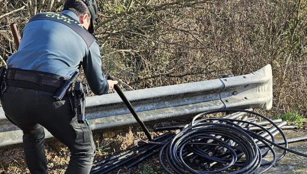 Sustrajeron unos 1.000 metros de cableado de la línea telefónica en la carretera A-1232, cuyo valor junto a los daños ocasionados es de unos 1.000 euros, dejando sin servicio telefónico a varias poblaciones cercanas. Se han detenidos a tres personas como presuntas autoras de un delito de pertenencia a grupo criminal y otro de robo con fuerza. En el operativo se pudieron recuperar unos 100 kg. de cableado de cobre.