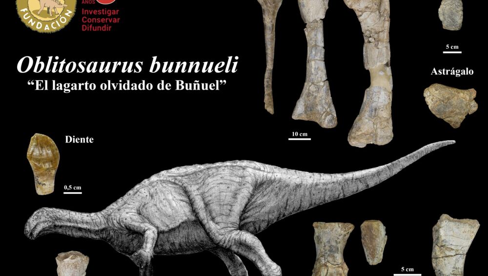 El nuevo dinosaurio definido por los paleontólogos de la Fundación Dinópolis en la prestigiosa revista científica Zoological Journal of the Linnean Society está dedicado al célebre director de cine español, nacido en Calanda, Luis Buñuel. Oblitosaurus, con unos 7 metros de longitud, permite completar un vacío respecto a la evolución de los escasos ornitópodos del Jurásico europeo.