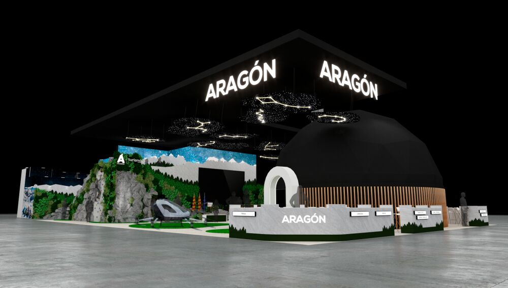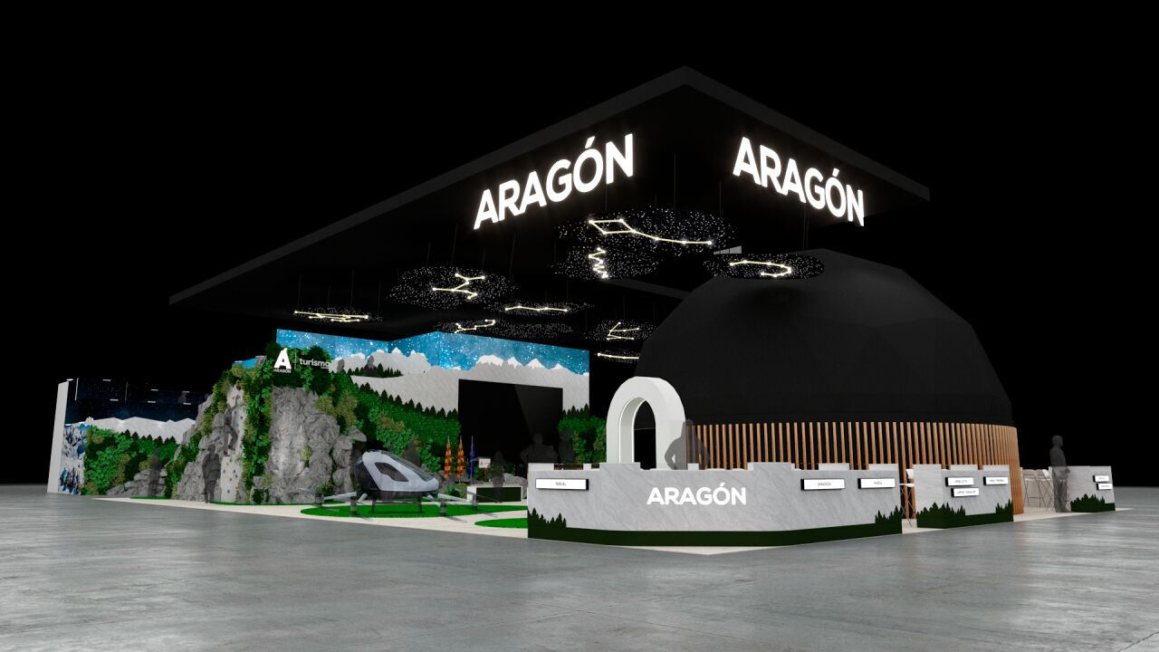 El stand de Aragón en Fitur – de la empresa barbastrense Integral Unusual Design – será el más grande hasta la fecha. Contará con 747 metros cuadrados repartidos en dos plantas y representará una montaña del Pirineo, con una catarata y un mirador en la parte superior. Habrá un dron de pasajeros como guiño al transporte del futuro, un planetario en pantalla 360 grados, un cielo estrellado y distintas experiencias inmersivas que servirán para reflejar, desde la innovación, la evolución de la comunidad.