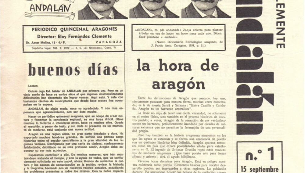 El galardón, que cada año con concede el ejecutivo autonómico en el marco de la celebración de la festividad de la Comunidad el 23 de abril, recaerá en el economista e historiador Eloy Fernández Clemente,primer director y primer impulsor de Andalán. Rotativo del que se imprimieron 467 números a lo largo de 15 años.Fernández agradece este reconocimiento, y recuerda las dificultades que tuvieron que asumir en los últimos años del franquismo.