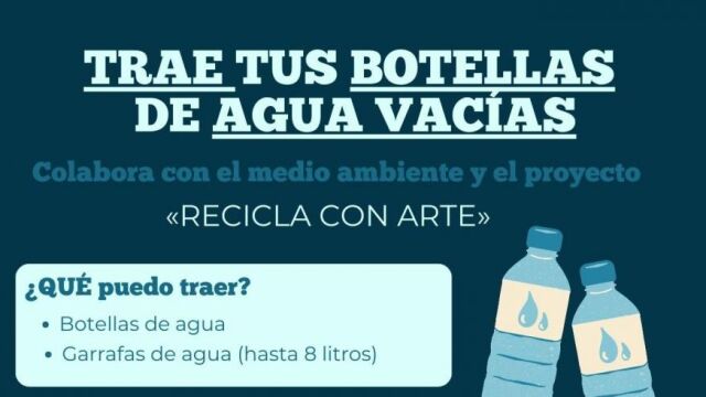 La Escuela Oficial de Idiomas Sol Acín Monrás, de Huesca, ha organizado este martes, 26 de marzo, la actividad "Recicla con Arte", con la colaboración del artista Eduardo Cajal y del IES Ramón y Cajal de la capital oscense. Con ella se busca concienciar sobre el problema de los residuos de plástico, poniendo el foco en las botellas de agua. Para ello, se ha pedido al alumnado que lleve sus botellas de agua vacías, sobre las que se realizará una acción.