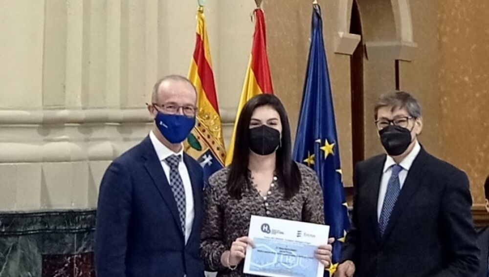 El galardón, otorgado y patrocinado por Ercros, ha consistido en una dotación económica para la autora del trabajo, Elena Barrio Querol, y la entrega de un diploma acreditativo a los tutores. El galardón forma parte de los Premios Fundación Hidrógeno Aragón, organizados por la Fundación para el Desarrollo de las Nuevas Tecnologías del Hidrógeno en Aragón, en cuyo patronato Ercros está integrada. Luis Gállego, director de la fábrica de Ercros en Sabiñánigo, hizo entrega del premio a la ganadora en representación de la empresa.