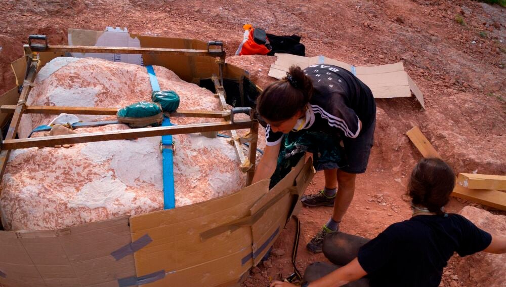 Un equipo internacional del paleontólogos liderado por el Grupo Aragosaurus, de la Universidad de Zaragoza, junto a la Universidad Nova de Lisboa, han extraído de un yacimiento en Loarre (Huesca) un gran nido de huevos de dinosaurio. Este hallazgo estaba incrustrado en un bloque de piedra de dos toneladas de peso, según han explicado a través de su página web.