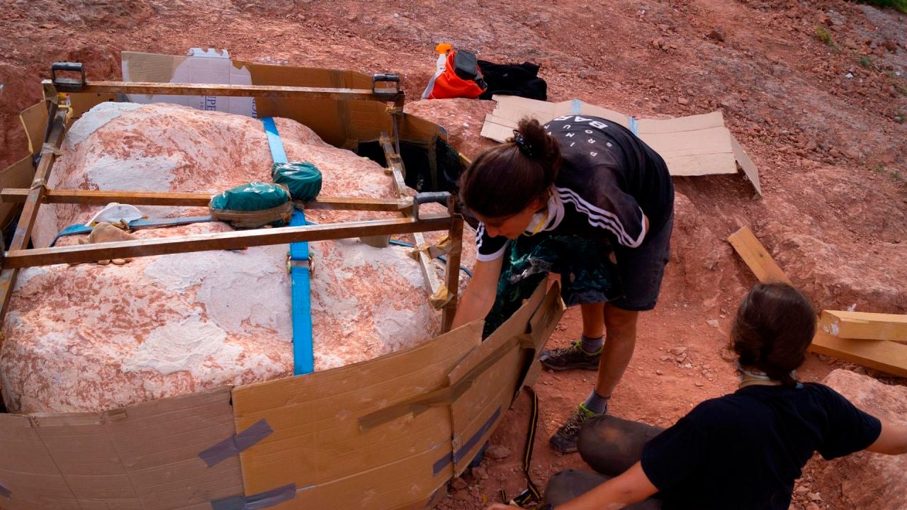 Para llevar a cabo esta extracción han participado cinco personas que han estado trabajando durante ocho horas al día, durante 50 días, es decir, un total de 400 horas. Y finalmente, consiguieron sacar el nido con ayuda de una máquina excavadora. "Es poco habitual que se extraigan bloques de estas dimensiones en una actuación paleontológica, pero a pesar de las dificultades técnicas que conlleva este proceso, la operación fue un éxito", declaran.