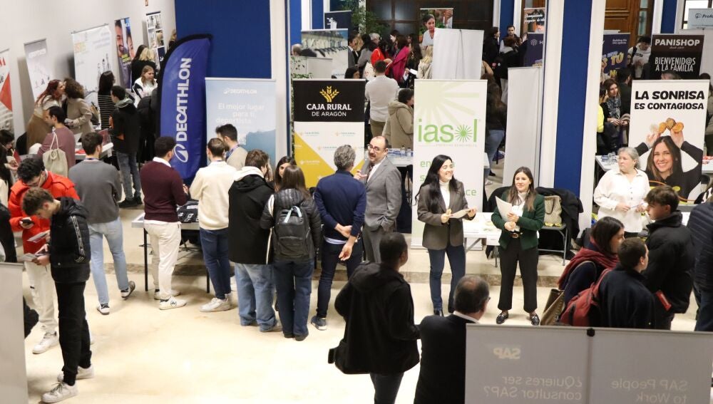 La novena Feria de Empleo organizada por la Cámara de Comercio de Zaragoza reúne hoy a 2.000 jóvenes demandantes de empleo y a más de 70 empresas. En el marco del Programa Integral de Cualificación y Empleo (PICE), los beneficiarios del Sistema Nacional de Garantía Juvenil pueden presentar su currículum a empresas como Microsoft, Amazon, Eboca o El Rincón.