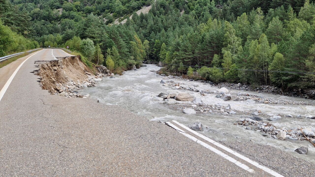 El ejecutivo actuará de urgencia en la A-138, donde el agua produjo dos hundimientos llevándose parte de la carretera, y empiezan los trabajos para despejar el acceso de la A-139 al fondo del valle de Benasque.