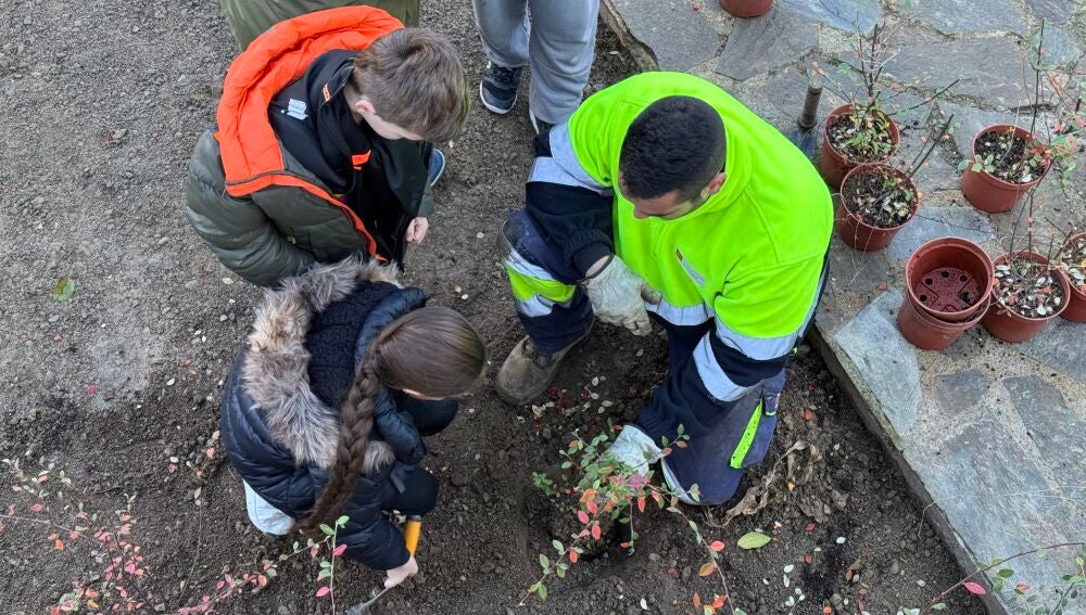 Los alumnos de tercero de Primaria del Colegio San Vicente han participado de la celebración de la “Green Flag” y, posteriormente al izado, han realizado la plantación de unos 60 arbustos.