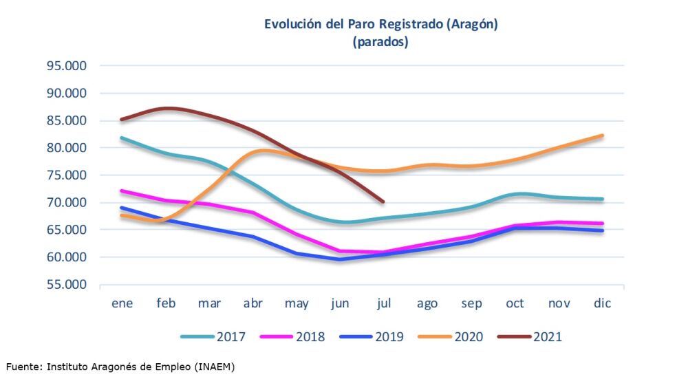 Histórico descenso del paro en el mes de julio en Aragón