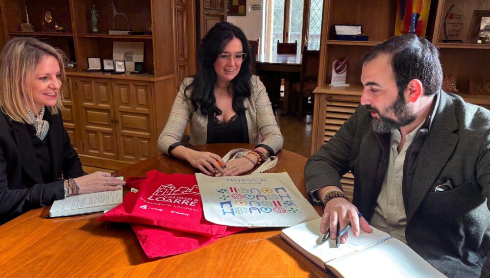 El Ayuntamiento de Huesca y el Castillo de Loarre reafirman su compromiso de colaboración para promocionar la fortaleza medievaly atraer a más turistas. La alcaldesa de Huesca, Lorena Orduna, y la concejala de Turismo, Nuria Mur, se han reunido con el Director de Explotación del Castillo de Loarre, Eduardo Corrochano, con el objetivo de consolidar y ampliar la colaboración entre el Ayuntamiento de Huesca y el Castillo de Loarre. Un encuentro en el que se ha puesto de manifiesto la importancia de las acciones conjuntas que ya se vienen desarrollando, como las rutas en autobús desde Huesca y las excursiones organizadas durante los meses de verano, iniciativas que facilitan el acceso al castillo y fortalecen la conexión entre la ciudad y uno de los monumentos más icónicos de Aragón, que se encuentra a apenas veinticinco minutos de la capital oscense.