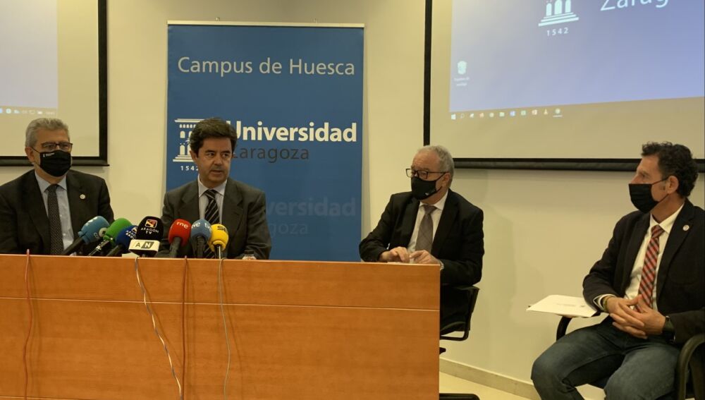 La Universidad de Zaragoza, la Diputación Provincial y el Ayuntamiento de Huesca, han presentado hoy la nueva cátedra de Montaña que se impartirá en el campus oscense. Las tres instituciones han firmado un convenio de cuatro años de duración al que se destinarán 100.000 euros. La cátedra contará con actividades formativas, jornadas y estudios de investigación y en cuyo marco se incluye el máster propio en Medicina de urgencia y rescate de montaña. Unos estudios que pretenden diferenciar al campus de Huesca, tal y como ha explicado el rector José Antonio Mayoral.