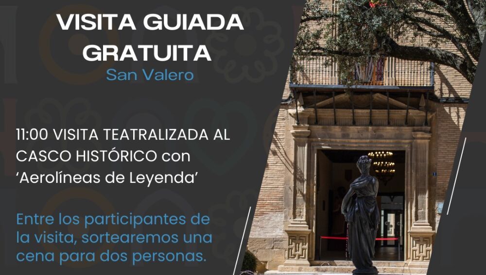 El Ayuntamiento de Huesca busca que los zaragozanos visiten la capital oscense durante San Valero y para ello, ha pensado en varias iniciativas que sirvan de aliciente. Se obsequiará con un dulce en forma de pajarita a todas aquellas personas que visiten ese día, el miércoles, la Oficina de Turismo. A las 11 horas se realizará una visita guiada teatralizada con el espectáculo de “Aerolíneas de leyenda” y entre todos los que hagan el recorrido, se sorteará una cena para dos personas en un restaurante de la ciudad.
