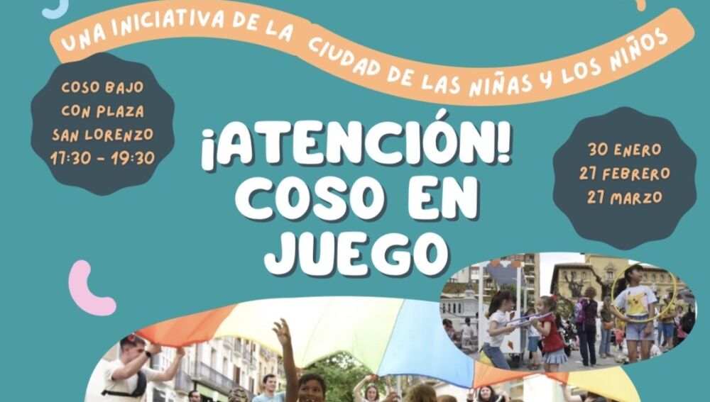El Ayuntamiento de Huesca pone en marcha el proyecto “Coso en Juego”, una iniciativa impulsada desde el Consejo de la Ciudad de las Niñas y los Niños para recuperar el espacio público como lugar de juego, autonomía y encuentro, entendiendo la ciudad como un entorno educativo, seguro y compartido. Así la primera edición tendrá lugar el próximo viernes 30 de enero, de 17'30 a 19'30 horas, tiempo en el que se cortará un tramo del Coso Bajo junto a la plaza San Lorenzo para transformarlo en un espacio de juego libre y no dirigido, en el que niños y niñas podrán jugar, explorar y relacionarse con libertad.