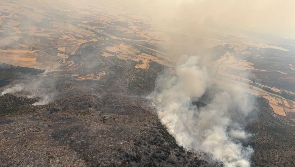 El perímetro del incendio es de 72 kilómetros y los esfuerzos se centran ahora en la cabeza del fuego en la zona de Embid de Ariza. El director general del Medio Natural, Diego Bayona, señala que son más optimistas sobre las tareas de control del fuego. Por su parte, el director de extinción, Jorge Crespo, avanza que están conteniendo las llamas en la zona de cabeza.