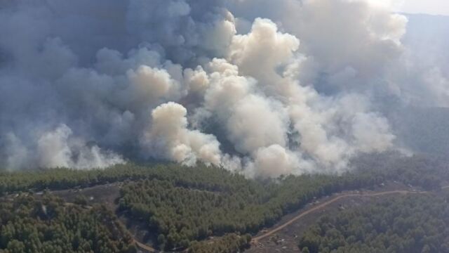 El frente izquierdo está prácticamente controlado, aunque quedan tres puntos calientes. En la zona están trabajando medios aéreos y varias cuadrillas terrestres, autobombas y bulldozers. El director general del Medio Natural, Diego Bayona, ha explicado que las llamas están afectando a una importante zona de pinar. La posible causa del fuego son unos trabajos con maquinaria forestal.