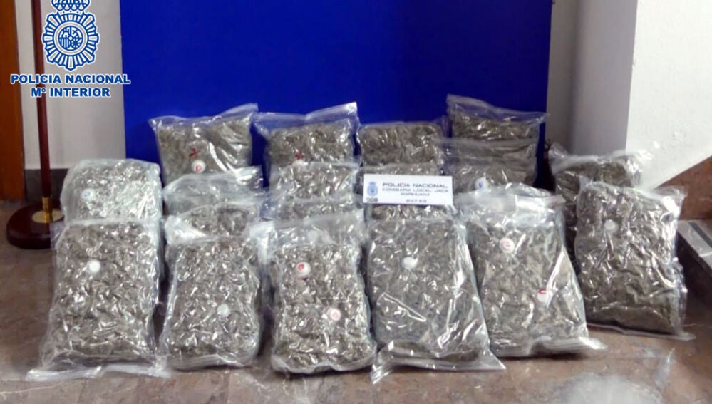Agentes de la Policía Nacional han interceptado, durante el dispositivo especial establecido por las fiestas de Santa Orosia y San Pedro en Jaca, un alijo de 25 kilogramos de cogollos de marihuana. Los hechos tuvieron lugar el día 27 de junio, a las 2:50 horas, cuando una patrulla observó un vehículo extranjero cuyo conductor mostraba una actitud vigilante. Por tal motivo, procedieron a la identificación del ocupante del vehículo, así como al registro del coche.