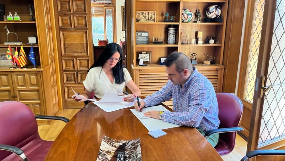 La alcaldesa de Huesca, Lorena Orduna, y el portavoz del grupo municipal de Vox en el Ayuntamiento oscense, Antonio Laborda, han mantenido hoy una reunión de trabajo para tratar asuntos claves para la ciudad como las ordenanzas fiscales o el presupuesto de 2023.