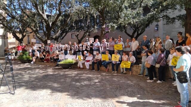 El colectivo lo considera una forma de "crear un ambiente de conflicto, así como embrutecer las relaciones humanas" en Huesca. Entre las personas concentradas, se encontraban los concejales del grupo socialista del Ayuntamiento.