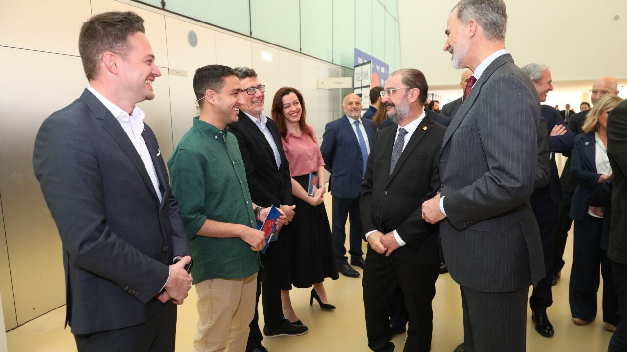 El Rey ha estado con los alumnos aragoneses que van a presentar sus proyectos al Reto del Talento. Los escogidos podrán en marcha sus ideas en temas como la reintegración social de los jubilados, la mejora de la educación financiera entre los más jóvenes o para la incorporación de la mujer a las titulaciones científicas. La Fundación ha presentado la iniciativa "Amplificarte" que usa la música para mejorar el bienestar emocional de los jóvenes en el marco del Congreso Importa.