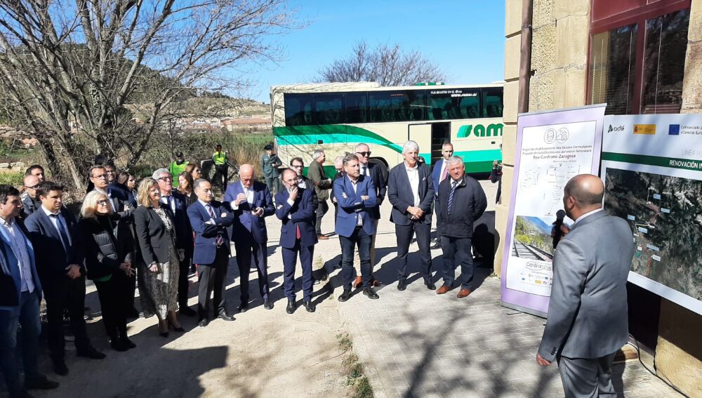Varias autoridades han visitado la estación de Ayerbe y Canfranc. | Gobierno de España