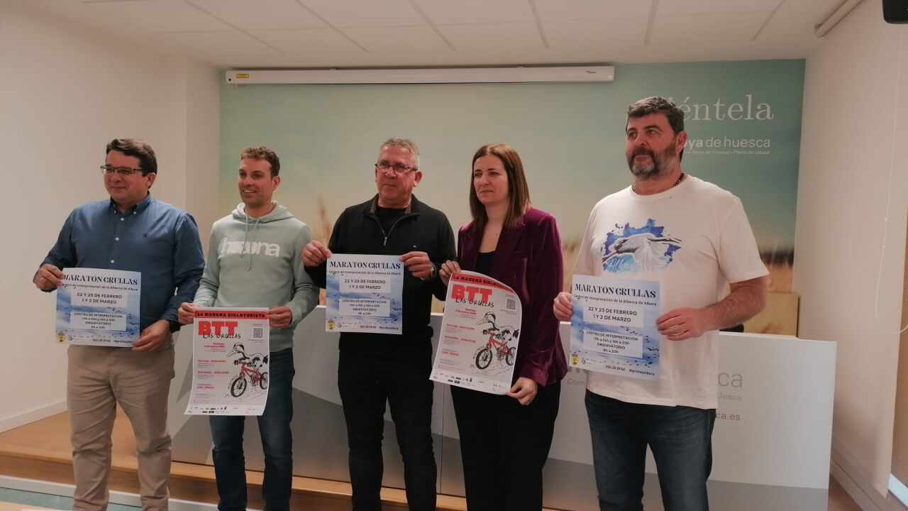 El Maratón de las Grullas es uno de los programas que se desarrollan en Centro de Interpretación del municipio, a lo que se suma la XIV Ruta BTT de las Grullas Alberca de Alboré, que se desarrollará el 9 de marzo a través de dos rutas. Una larga de 50 kilómetros, que permite administrar puntos de interés durante su recorrido como el dormidero de las grullas, el Castillo de Artasona, viñedos, la estación de ferrocarril abandonada o la Alberca de Alboré, entre otros, y una ruta familiar de 14,5 kilómetros. La primera saldrá a las 10,00 horas y la segunda a las 10,30 horas de Montmesa. Iván Castro Viñuales, gerente de Hozona, ha destacado las condiciones del terreno, presomontano, con llanuras y elevaciones y un paisaje reverdecido por las lluvias de estos meses. “Esta prueba tiene todos los ingredientes para triunfar”, ha apuntado.