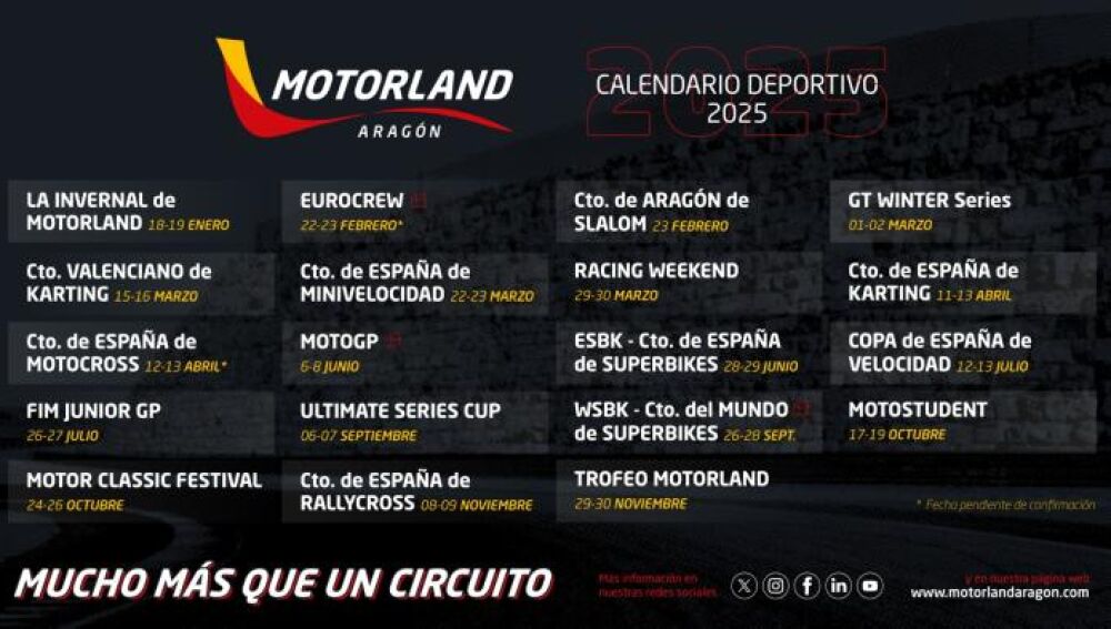 Por su parte, el director gerente del circuito, Jorge Panadés, ha confirmado que "va a ser un calendario muy completo".
