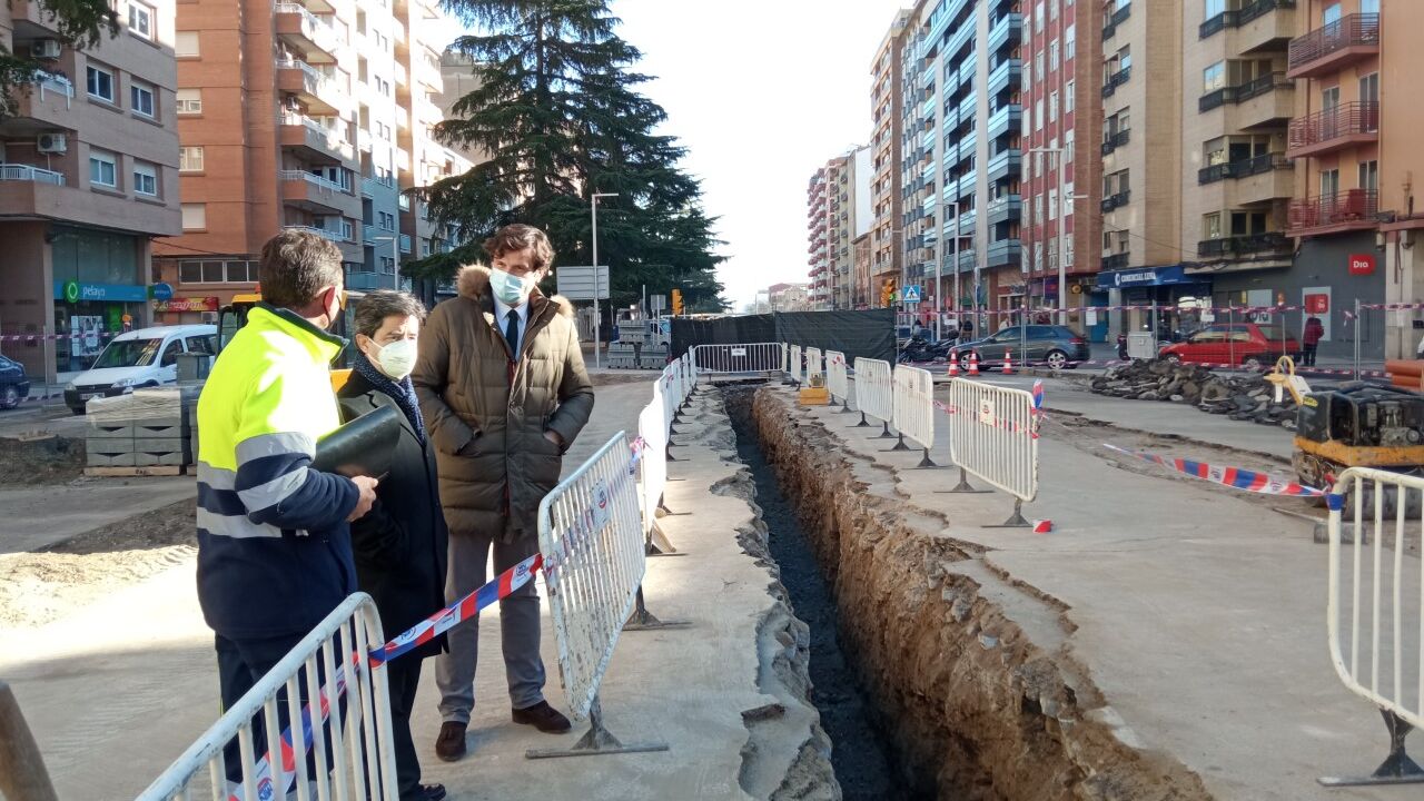 El alcalde de Huesca, Luis Felipe, ha visitado este martes los trabajos asegurando que avanzan a buen ritmo a pesar de ser una obra complicada por la confluencia de viales. La remodelación de esta última fase supera el millón 400.000 euros.