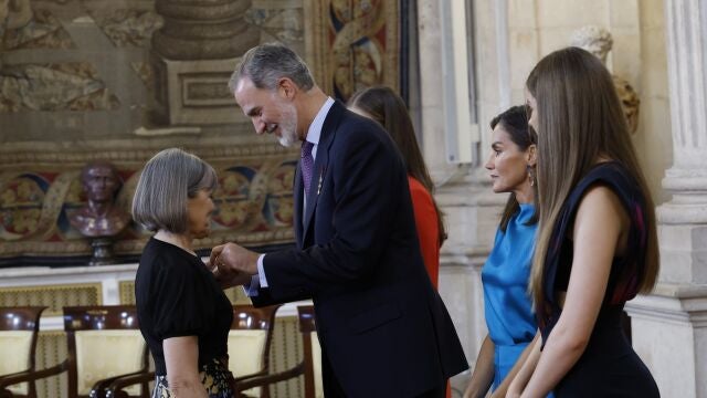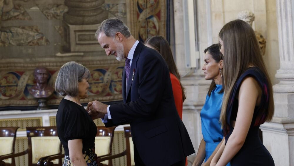 María José Arbués Gracia, restauradora del Museo de Huesca, ha recibido este miércoles de manos del rey la condecoración al Mérito Civil por sus servicios a la sociedad y a los ciudadanos. Una distinción que se la ha otorgado en el marco de los actos de conmemoración del décimo aniversario de la proclamación del rey Felipe VI en el Palacio Real de Madrid, donde se ha condecorado a 19 ciudadanos españoles.
