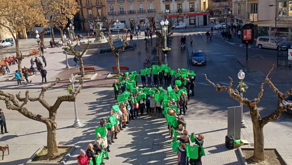 Los oscenses se han juntado en la Plaza de Navarra para formar un lazo humano en un acto convocado por la Asociación Española Contra el Cáncer, quiere concienciar de la necesidad de seguir investigando sobre esta enfermedad y tomar medidas para alcanzar en el año 2030 un 70% de supervivencia.