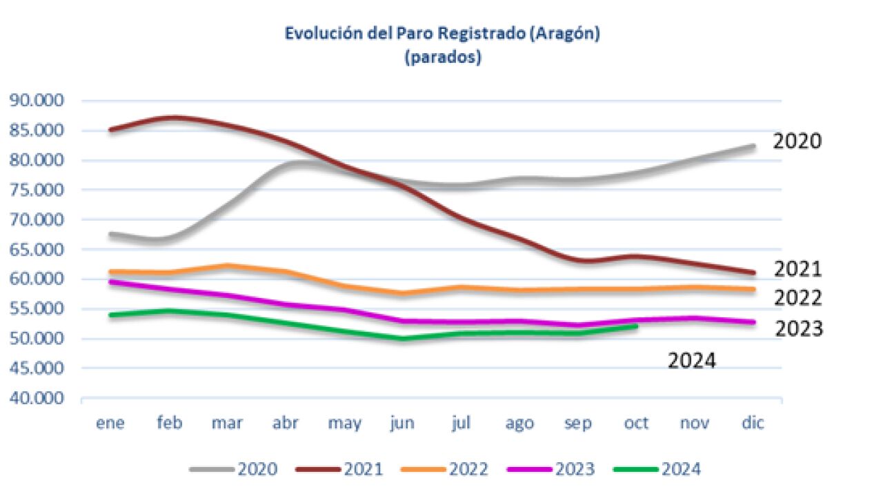 El paro aumentó en 1.126 personas en el mes de octubre en Aragón, lo que supone un incremento del 2,2%. En total, 52.049 ciudadanos de la Comunidad Autónoma están inscritos en las oficinas del INAEM. Es la cifra más baja en un mes de octubre desde el año 2007. Si tomamos como referencia el último año, el desempleo ha descendido en 1.010 personas. En octubre, el paro aumentó especialmente en servicios, industria y agricultura, sólo se redujo en la construcción.