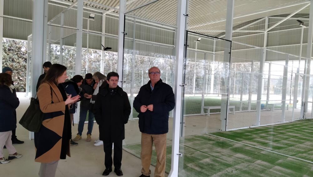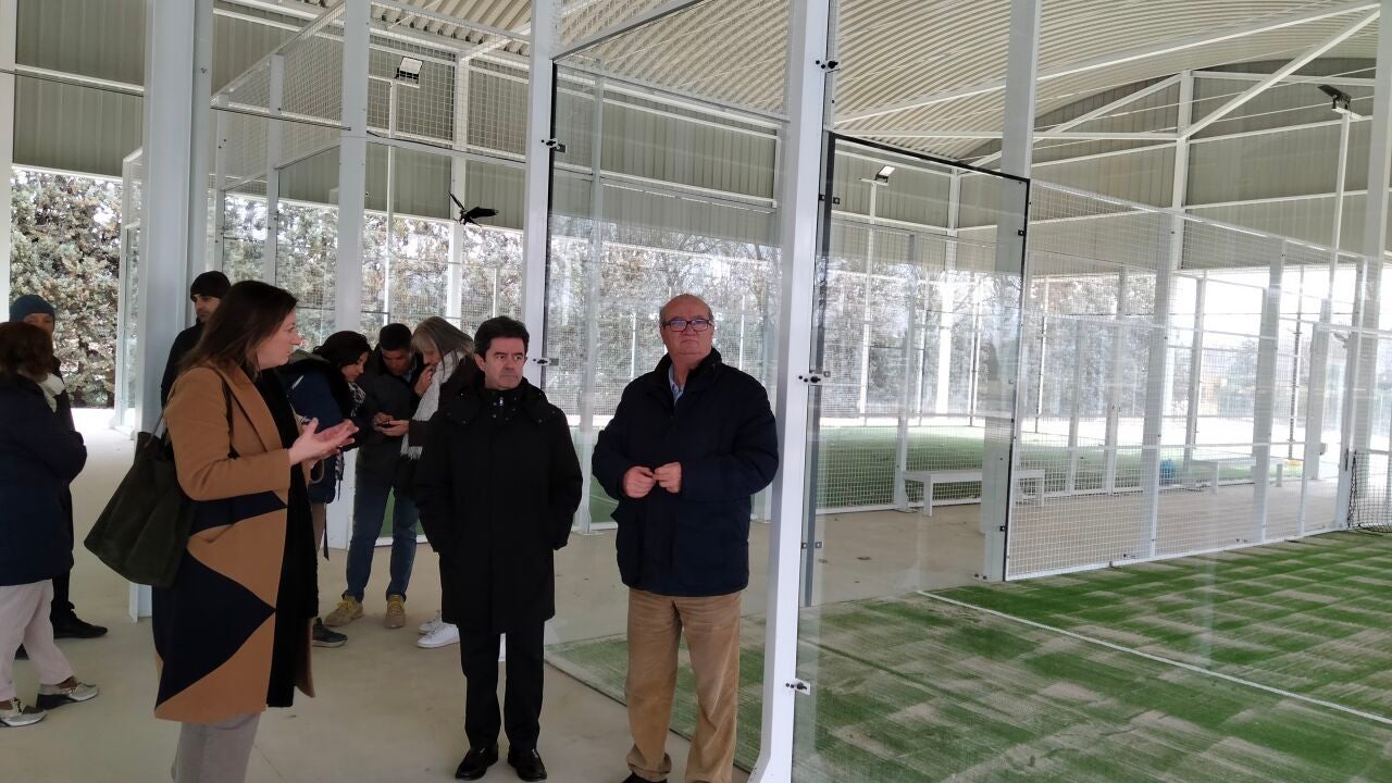 Rodrigo, el alcalde de Huesca, Luis Felipe, y el concejal de Deportes, José María Romance, han visitado hoy jueves las nuevas instalaciones de la Ciudad Deportiva José María Escriche. Hay cuatro pistas cubiertas de pádel, dos serán para los cursos del Patronato y las otras dos, de uso libre a través de alquiler. También serán de uso libre y, además, gratuitas la pista polideportiva y el circuito de calistenia. Se espera que todo se pueda utilizar desde este mes.