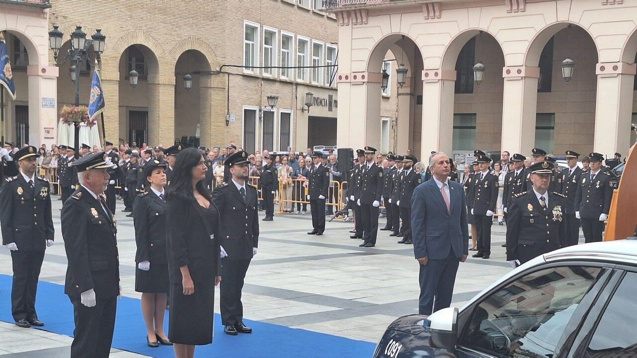 La Policía Nacional de Huesca ha celebrado esta mañana en la capital oscense los actos del día de la Policía con motivo de la festividad de los Santos ángeles Custodios, patronos del cuerpo. La jornada ha dado comienzo a las 11 horas con una misa en memoria de los fallecidos del Cuerpo y a continuación en la plaza López Allué han tenido lugar los actos institucionales con la entrega de las medallas al mérito policial así como placas de reconocimiento a policías nacionales jubilados y diplomas a personas o empresas colaboradoras con las funciones de la institución, entre ellas nuestra emisora Onda Cero Huesca, por el programa de divulgación sobre seguridad que se emite de manera quincenal los lunes en Más de Uno Huesca.
