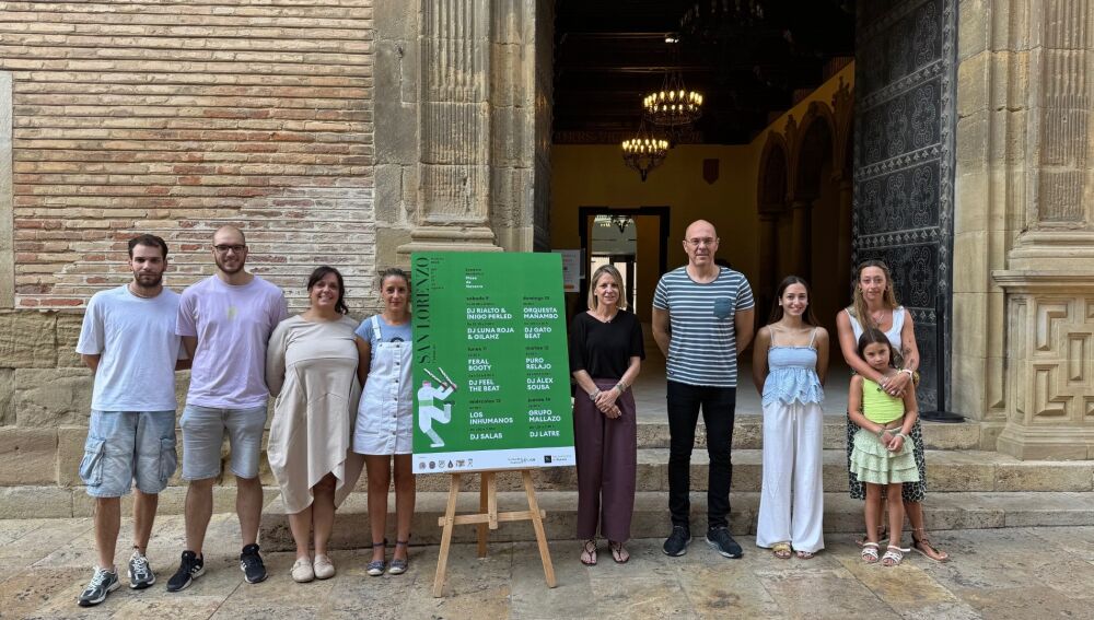 La concejal de fiestas, Nuria Mur, y representantes de las seis Peñas Recreativas de Huesca han presentado las actuaciones y conciertos que se desarrollarán en la plaza de Navarra durante las fiestas de San Lorenzo 2025. Se trata de una programación trabajada y consensuada entre el área de fiestas del consistorio oscense y las Peñas Recreativas, que se desarrollará del 9 al 14 de agosto.