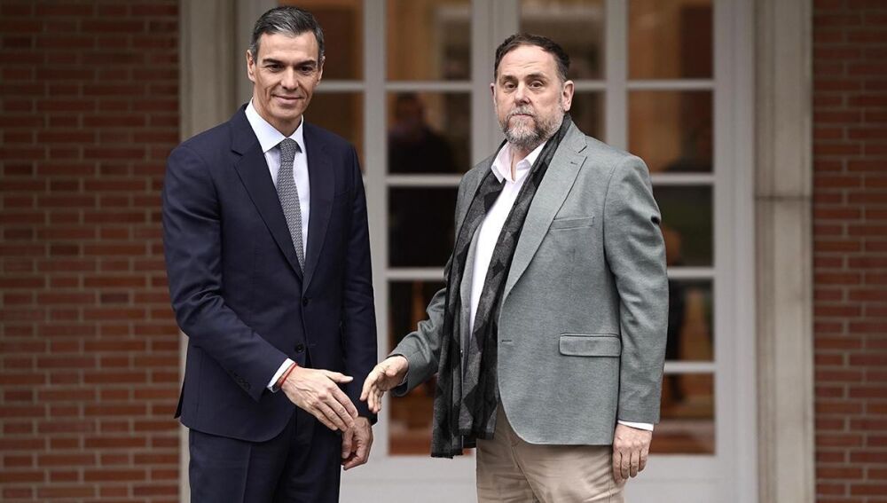 El presidente Sánchez y Oriol Junqueras (ERC) se han reunido en La Moncloa | EFE