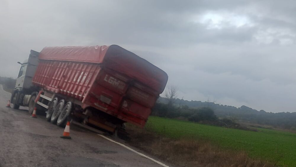 Reclaman la mejora de la A-125 en Ayerbe tras el vuelco de un camión