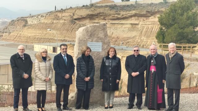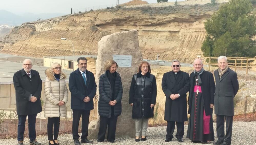 El obispo de Barbastro-Monzón, Ángel Pérez, ha regalado a la reina Sofía un crismón de la diócesis y la mañana se ha completo con el descubrimiento de una placa en un monolito con la fecha del día de hoy.