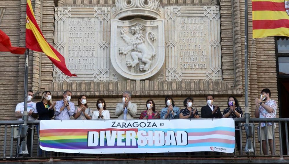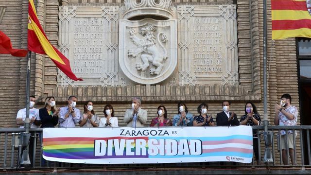 Este lunes, 28 de junio, se celebra el Día del Orgullo LGTBIQ y en las tres provincias aragonesas, se están celebrando diversos actos reivindicativos, para defender los derechos de este colectivo. En Zaragoza capital, esta tarde habrá una manifestación que partirá del Paraninfo y marchará hasta la plaza del Pilar, y las principales fuentes de la ciudad se iluminarán con los colores del arco iris. Además, en el balcón central del Ayuntamiento, se ha colgado una pancarta en la que puede leerse “Zaragoza es diversidad”.