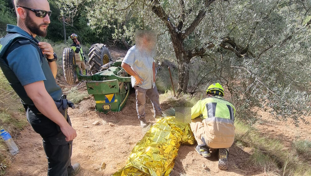 El rescatado se encontraba realizando labores agrícolas, cuando su tractor volcó y quedó atrapado bajo el vehículo, algo que le provocó varias contusiones.
