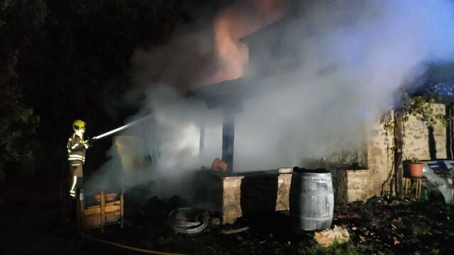 La rápida actuación de los bomberos, que efectuaron la intervención en menos de dos horas y media, ha logrado salvar la vida de este vecino que se había quedad aislado por el fuego, según informa la Diputación Provincial.
