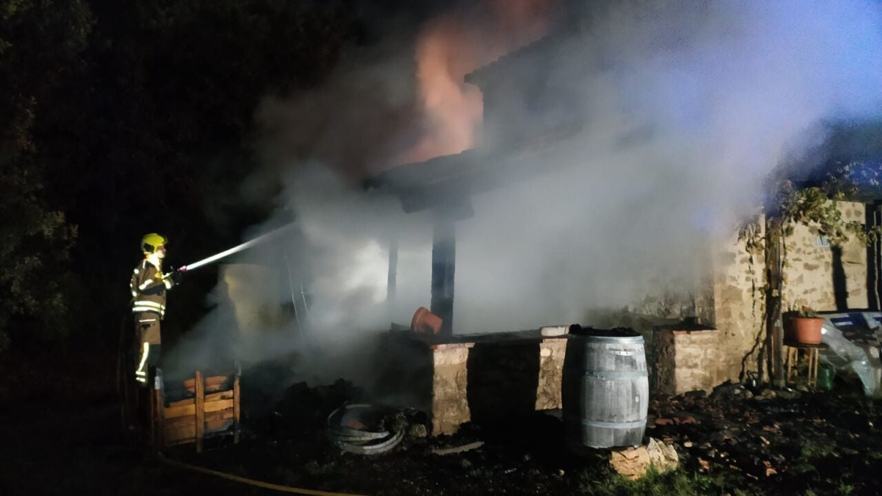 El propietario de la vivienda había quedado aislado por las llamas. El 061, que colaboró en la operación, tuvo que administrarle oxígeno. En la extinción ha participado una dotación completa del parque de Barbastro.