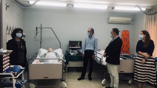 El aula, en apariencia una habitación de hospital, un centro de urgencias de Atención Primaria o una ambulancia, cuenta con muñecos inteligentes que pueden programarse y simular situaciones médicas reales, tal y como indicaba su coordinador, Enrique Capella.