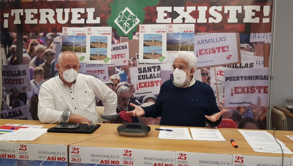 Los representantes del movimiento ciudadano Manuel Gimeno y Antonio Saz han explicado la postura de Teruel Existe en rueda de prensa. Han recordado que antes de convocar esta protesta, han presentado alegaciones a los proyectos que ya existen. Además, han insistido en que no quieren que suceda lo mismo que en Maranchón, un municipio de Guadalajara minado de molinos en el que la población ha seguido decreciendo y no se han generado posibilidades laborales.