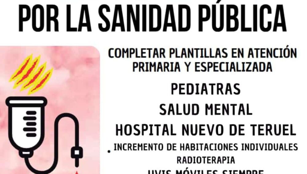 La Federación de Vecinos de Teruel ha convocado una nueva manifestación en defensa de la sanidad pública para el próximo sábado día 26. La protesta partirá a las 11 de la mañana desde la Plaza de la Catedral y culminará en la delegación territorial del Gobierno de Aragón, en la calle San Francisco