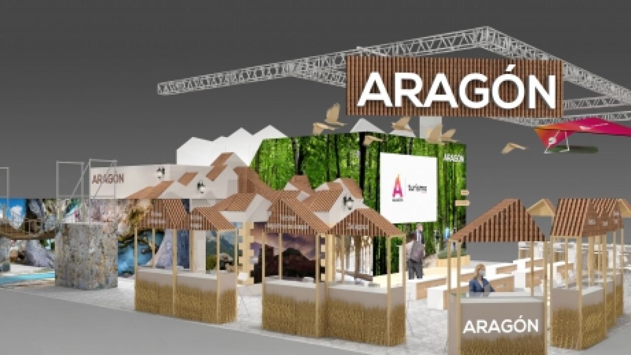 El turismo rural será este año el protagonista en el stand de Aragón en Fitur. Se ha diseñado un espacio rectangular, con un ágora central, que representa una villa aragonesa, donde las imágenes de las casas de piedra o ladrillo se fusiona con el paisaje natural y las cumbres nevadas del Pirineo o Matarraña, y con otros elementos en altura referentes al turismo deportivo u ornitológico. Debido a la pandemia, se han eliminado los techos y, además de solicitarse el pasaporte Covid, se limitarán las degustaciones y se controlarán aforos.